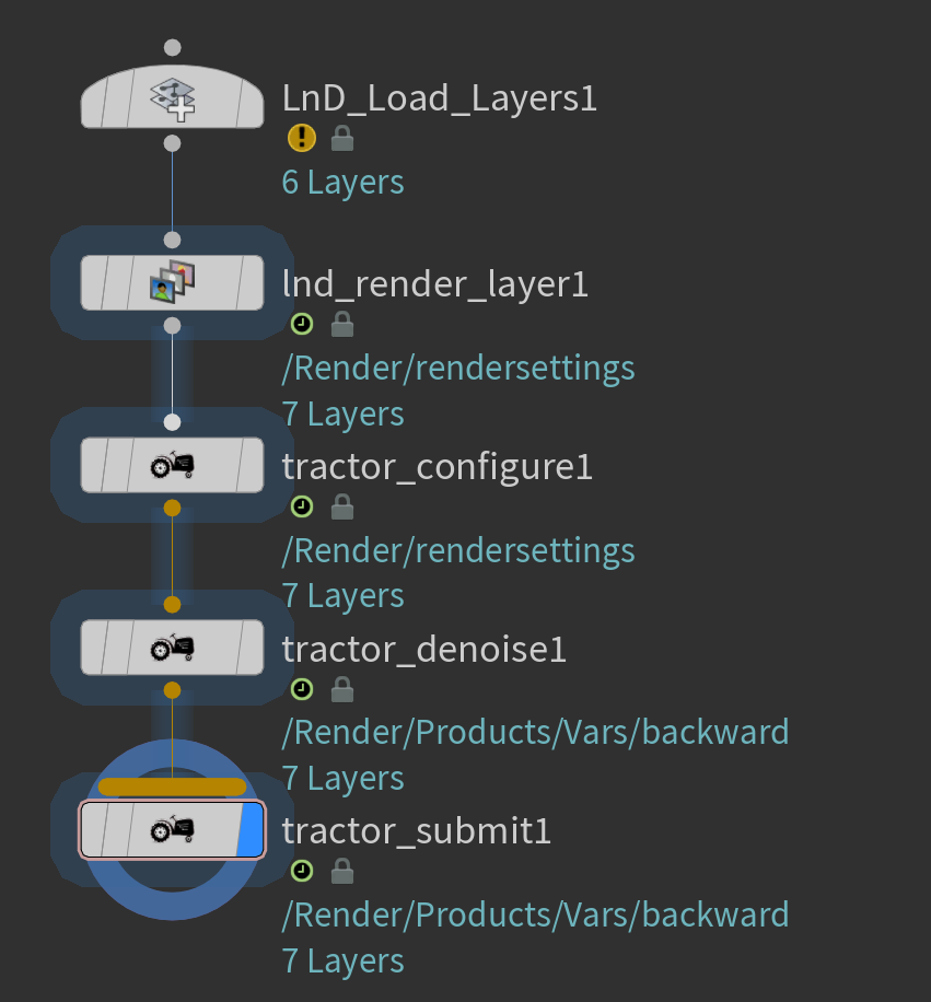Artists can create as many Tractor Configure nodes as needed and feed them all into the Tractor Submit node. This allows them to quickly wedge various lighting rigs or render setting configurations within the LOP context without needing to use TOPs. All streams are submitted as a single job to Tractor.