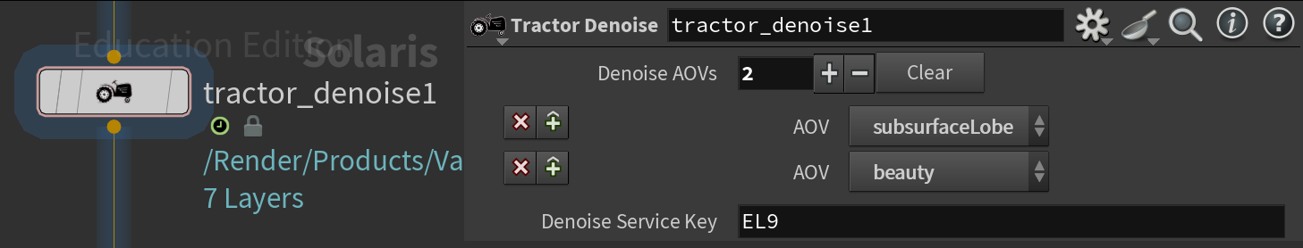 Denoising with the RenderMan denoiser can be configured with the Tractor Denoise node. This includes support for denoising arbitrary AOVs, sorting them based off diffuse_ and specular_ prefixes, if provided.